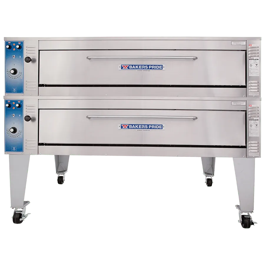 The Bakers Pride® model EB-2-8-5736 pizza oven is ideal for high-volume restaurants, offering the same durability and performance as our gas deck ovens with the low maintenance of an electrical system. This double-stacked model has two steel decks with 8” deck heights. The independently controlled, U-shaped heating elements on top and bottom allow for uniform temperatures and perfectly balanced baking. This model is constructed with heavy-duty, .25" angle iron frame, which is fully welded to allow for stacking.