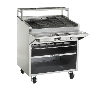 Ignite culinary passion with the Bakers Pride F-48RS Charbroiler, Gas, Floor Model. This Dante Series charbroiler is designed to meet the demands of a busy commercial restaurant kitchen. With a spacious 45"W x 24"D broiler area and 5.5 burners, this charbroiler provides ample cooking space and powerful heat distribution. The stainless steel radiants ensure even heat distribution and quick recovery times, while the adjustable top grate assembly with floating 1/2" dia. steel rods allows for precise control over cooking temperatures. The 6" stainless steel work deck and grease pan make cleaning a breeze, while the open cabinet base provides convenient storage for utensils and supplies. With a sturdy stainless steel construction and adjustable legs, this charbroiler is built to withstand the rigors of a commercial kitchen. With a powerful 198000 BTU output, CSA Star and NSF certifications, and CSA Flame safety rating, the Bakers Pride F-48RS Charbroiler is the perfect addition to any commercial restaurant looking to elevate their grilling game.