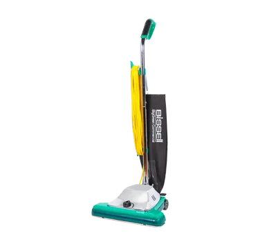 Invest in superior cleanliness with the Bissell Big Green Commercial, BG102H Vacuum Cleaner. Designed specifically for commercial restaurant use, this upright vacuum offers exceptional performance and durability. With a 16" cleaning path and a comfort-grip handle, it effortlessly tackles large areas, ensuring efficient and thorough cleaning. The top fill high filtration disposable filter bag captures even the smallest particles, promoting a healthier environment for your staff and customers. Equipped with a heat overload protection system and a reinforced fan with a lifetime warranty, this vacuum is built to withstand the demands of a busy restaurant. The (6) position manual carpet height adjustment allows for versatile cleaning on different floor surfaces, while the belt drive aluminum roller brush ensures effective dirt and debris removal. With a 50 ft. power cord, you can easily maneuver around the restaurant without the need for frequent unplugging. Invest in the Bissell Big Green Commercial, BG102H Vacuum Cleaner and experience the power and reliability it brings to your restaurant cleaning routine.