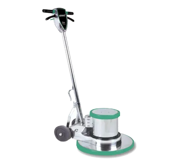 Upgrade restaurant hygiene with the Bissell Big Green Commercial, BGH-15E, Floor Machine. This heavy-duty floor machine is designed to tackle the toughest cleaning tasks in a commercial restaurant setting. With a 15" pad size and adjustable handle positions, it offers versatility and convenience. The interlock switch and non-conductive dual triggers ensure safety during operation. The 6" non-marking wheels and full wrap bumpers protect your floors and furniture from damage. The 50 ft. safety cord provides ample reach, allowing you to clean large areas without the need for frequent outlet changes. Powered by a 1.5 HP motor, this floor machine operates at 175 RPM, delivering powerful and efficient cleaning performance. The polished aluminum chassis adds durability and longevity to the machine. Upgrade your restaurant's cleaning routine with the Bissell Big Green Commercial, BGH-15E, Floor Machine and experience superior cleanliness and hygiene.