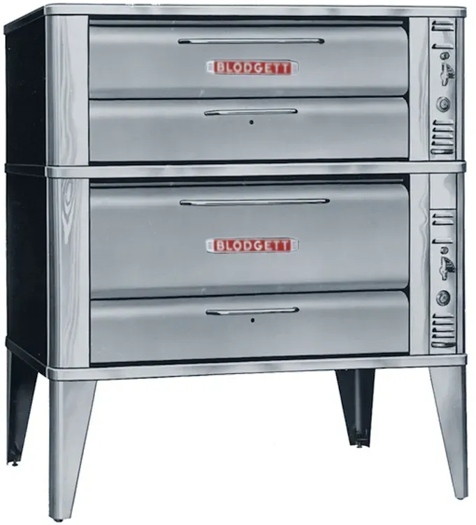 The Blodgett Deck Oven line has set industry wide standards for excellence in baking characteristics, performance and reliability. Simplicity of design and quality construction throughout assure years of trouble-free operation. Blodgett provides the strongest warranty in the business with a standard five-year door warranty! Creating endless possibilities with the Basic Four! The Blodgett large 900 Series gas deck ovens come in four basic sections. Each section has the same 60″ x 40″ footprint and can be stacked in any combination. The possibilities are endless. Separate heat controls for each section permit baking and roasting at different temperatures, simultaneously, in one oven! Blodgett’s Basic Four design gives you the ultimate in versatility, efficiency, and economy. 961-951 is a 961 oven stacked on a 951 oven with a total of one 7” and one 12” high baking compartment and includes 7” s/s adjustable legs, stainless steel draft diverter or direct vent, crown angle trim and double gas connector