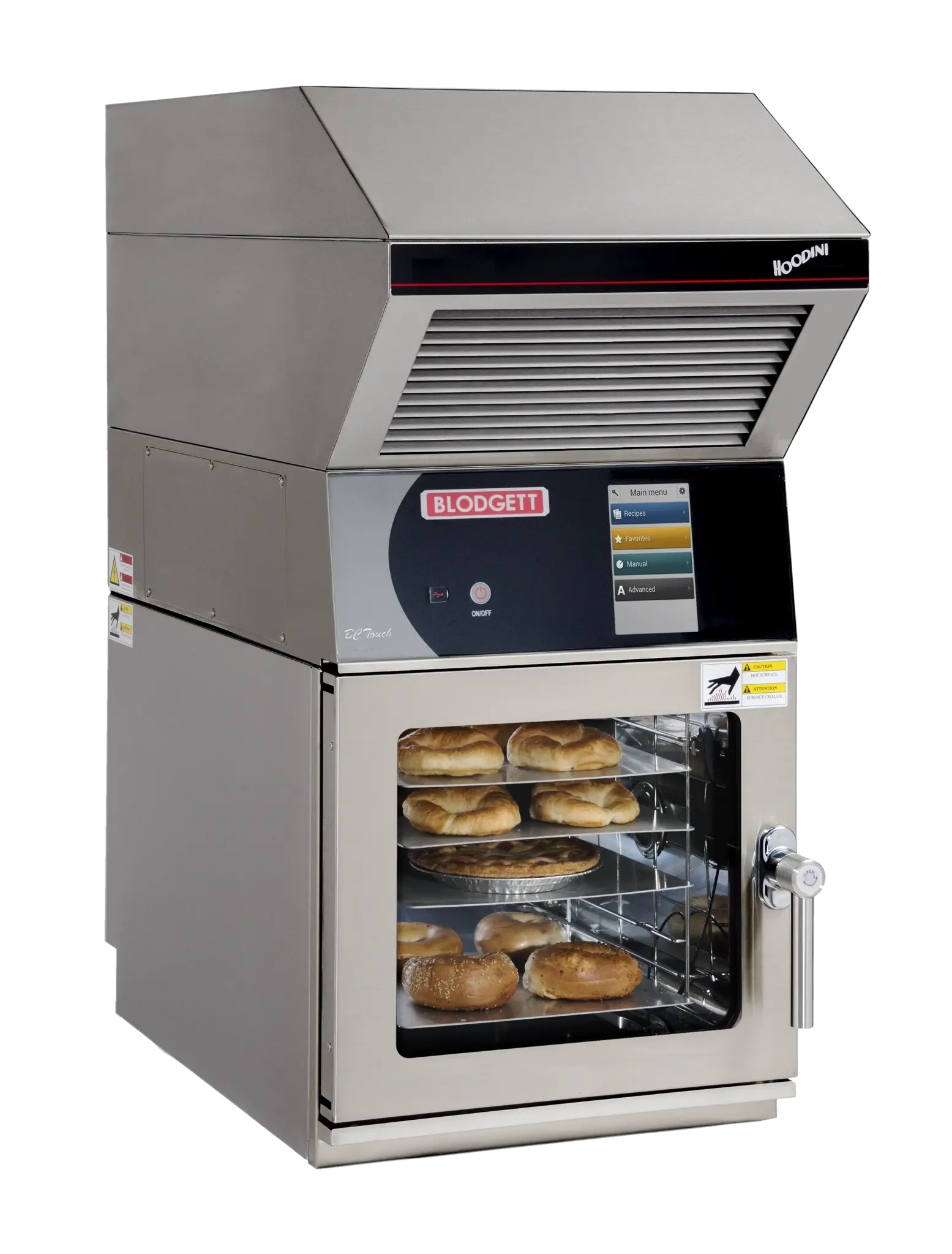 Every kitchen has a limited amount of space for equipment that needs a ventilation system. With the Blodgett Combi Hoodini™ your oven can break free from the hood! The Hoodini™ ventilation system, designed for the Blodgett Combi, lets you place your oven just about anywhere. The Hoodini removes smoke, odor, and moisture from the oven cavity. Oven fry bacon or roast chickens and breathe easy. This ventless solution is available on all stand alone oven sizes from the mini oven models all the way up to the 102 size model. There are no restrictions on products and recipes that you can cook in these ovens. Hoodini is free of consumables. You are not required to buy any filters or call any service companies to change them.