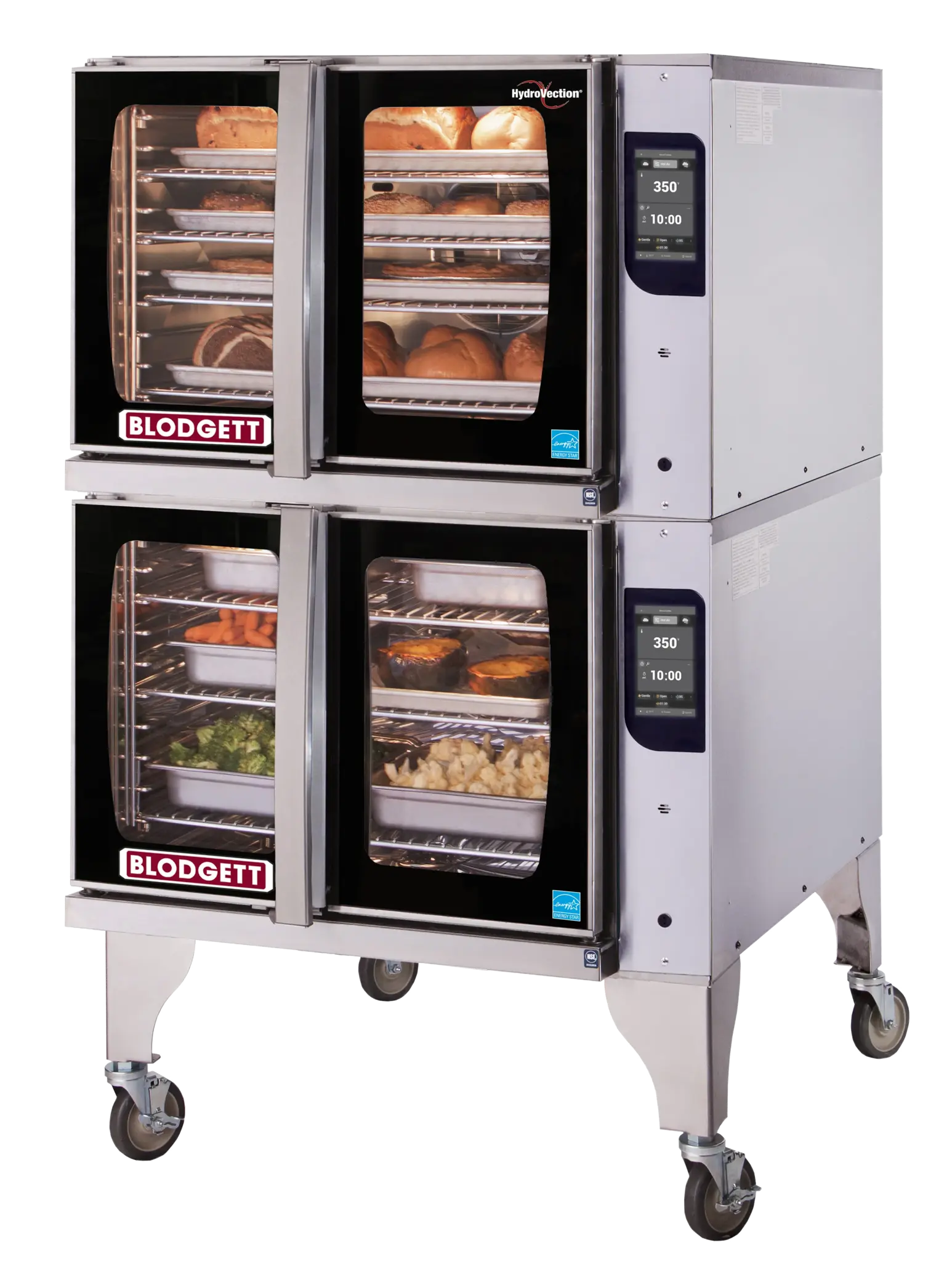 The Blodgett Hydrovection is the only split door, continuously humidified oven on the market. With its compact 38” footprint, the same as your convection oven, the Hydrovection saves space in your kitchen. The Hydrovection allows you to do more, bake, roast, gratinate, poach - in less space. Hydrovection, it’s practically a Combi at half the price! HV-100EDBL is a double stack oven and includes 8-1/2” stainless steel legs, casters and stacking kit