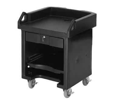 Introducing the Cambro VCS519 Cash Register Stand, designed to set new standards in your commercial restaurant kitchen. This versatile and durable stand is perfect for streamlining your cash register operations. With its lockable center drawer and adjustable shelf, you can securely store your cash and other valuable items. The cut-out design adds a touch of style while ensuring easy access to the register. Made from one-piece, seamless, and double-wall polyethylene, this stand is built to withstand the demands of a busy restaurant environment. The polyurethane foam insulation helps maintain the temperature of your cash register equipment. The molded-in handles make it easy to move the stand around, while the threaded faucet drain allows for hassle-free cleaning. Equipped with four 6" swivel casters with brakes, this stand offers mobility and stability. Available in Kentucky green, this NSF-certified stand is a reliable and practical addition to any commercial restaurant. Upgrade your cash register setup with the Cambro VCS519 Cash Register Stand.