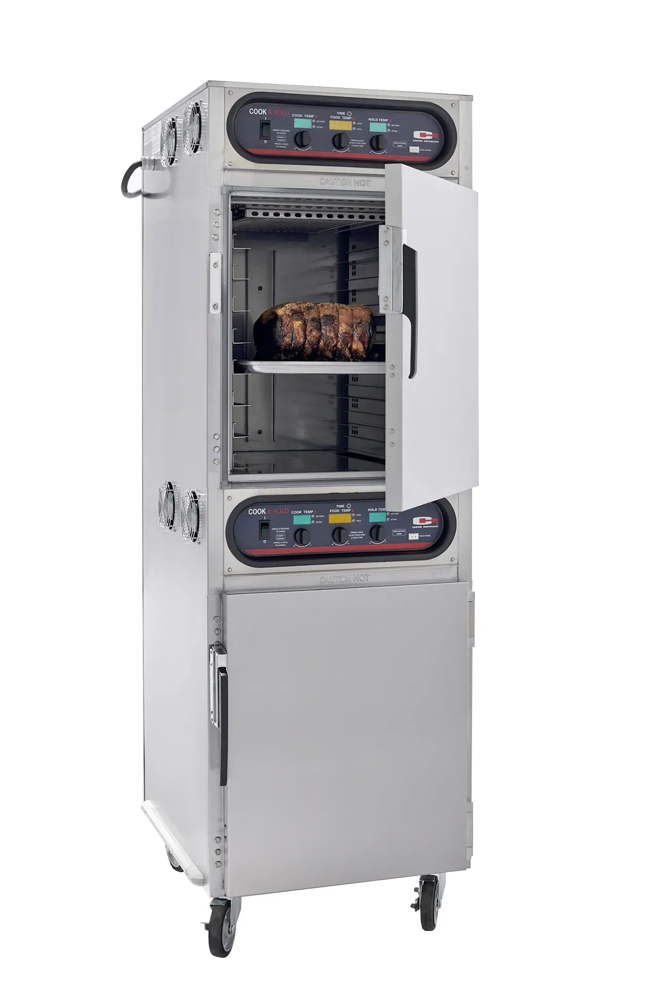 For a tender, caramelized roast, go low and slow with a cook and hold cabinet.. The low temperature roasting and holding produces breaks down the connective tissue and the gentle air circulation caramelizes the roast and seals in the juices for a superior prime rib. The cabinet is versatile and can cook much more, including turkeys, chickens, pork, veggies, potatoes...even desserts.