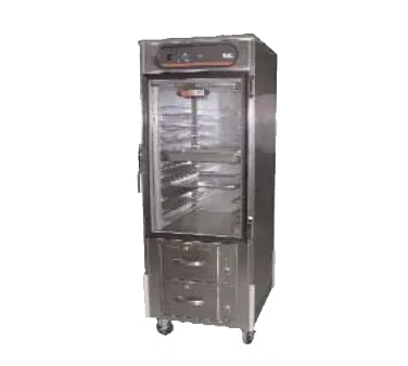 Introducing the Carter-Hoffmann HL8-10-RW Heated Cabinet, Mobile. Innovate food storage to reduce challenges with this versatile and efficient solution. Designed for commercial restaurant use, this full-height, insulated cabinet offers ample space for (20) 12" x 20" or (10) 18" x 26" pans. The universal slides ensure easy access and organization of your culinary creations. With a solid field reversible door and a 2-drawer warmer at the base, this cabinet provides convenient storage and warming options. The electronic controls allow precise temperature management, while the bottom-mount forced air heat ensures even distribution. Made of durable stainless steel, this cabinet is built to withstand the demands of a busy kitchen. Equipped with four swivel casters, including two with brakes, it offers mobility and stability. Trust Carter-Hoffmann to deliver quality and reliability for your restaurant's food storage needs.