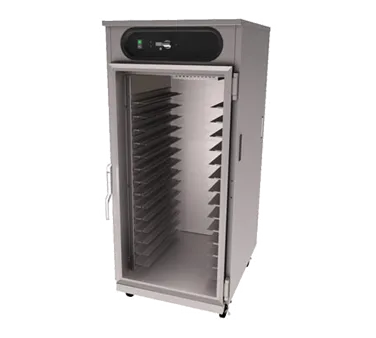 Modernize food handling for efficiency with the Carter-Hoffmann HL8-14 Heated Cabinet. This mobile cabinet is designed to streamline operations in commercial restaurants, ensuring that food stays hot and ready for serving. With a capacity of up to 28 12" x 20" pans or 14 18" x 26" pans, this cabinet can accommodate a large volume of food. The universal pan slides make it easy to load and unload pans, while the top-mount forced air heating system ensures even heat distribution. The solid field reversible door provides easy access and helps to maintain the desired temperature inside. Made of stainless steel, this cabinet is durable and easy to clean. With its digital controls and 5" swivel casters (2 with brakes), the Carter-Hoffmann HL8-14 Heated Cabinet is a reliable and convenient addition to any commercial kitchen.