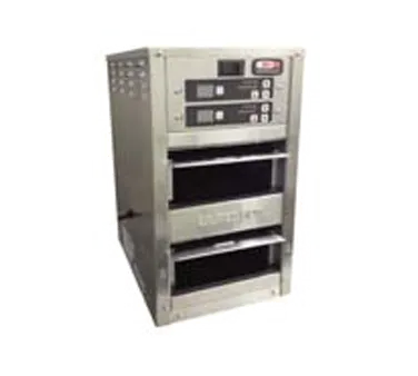 Elevate kitchen efficiency with innovation. Introducing the Carter-Hoffmann MC213GS-2T Heated Cabinet, Countertop. This modular holding cabinet is designed for commercial restaurant use, offering single-sided access and a side-loaded configuration for easy operation. With a 2-1/2" pan depth, it is perfect for storing moist food items, ensuring their freshness and quality. The electronic temperature control allows precise temperature management, guaranteeing optimal food preservation. The stainless steel construction ensures durability and easy cleaning, making it ideal for busy restaurant kitchens. The cabinet comes with two 12" x 6" pans (not included), providing ample space for storing a variety of dishes. Certified by cUL, NSF, and CE, this Carter-Hoffmann heated cabinet meets the highest industry standards. Enhance your restaurant's workflow and keep your food at the perfect temperature with the MC213GS-2T Heated Cabinet, Countertop.