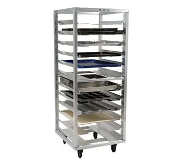 Introducing the Carter-Hoffmann O8631V Pan Rack, Universal. Streamline food handling to improve efficiency with this versatile pan rack. Designed for commercial restaurant use, this rack is perfect for organizing and storing trays and pans. With a capacity to hold either 12 trays measuring 18" x 26" or 24 pans measuring 12" x 20", this rack offers ample space for all your culinary needs. The adjustable slides allow for easy customization, with 1-1/2" increments to accommodate different sizes. Made of durable aluminum construction, this end-loading rack is built to withstand the demands of a busy kitchen. The 5" casters provide smooth mobility, making it effortless to transport the rack wherever it's needed. Enhance your restaurant's efficiency and organization with the Carter-Hoffmann O8631V Pan Rack, Universal.