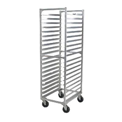 Optimize food storage for operational challenges with the Carter-Hoffmann O8636 Pan Rack, Bun. This double-width rack is designed to meet the demanding needs of commercial restaurants. With open sides and fixed angle slides, it provides easy access and efficient organization for up to 36 trays measuring 18" x 26". The 3" spacing between the trays allows for proper air circulation, ensuring that your baked goods stay fresh and delicious. Made of durable aluminum construction, this rack is built to withstand the rigors of a busy kitchen. The end-loading feature makes it convenient to load and unload trays, saving you time and effort. Equipped with 5" casters, it is easy to maneuver and transport. Trust Carter-Hoffmann, a reputable vendor in the industry, to deliver a reliable and efficient pan rack that will enhance your restaurant's operations.