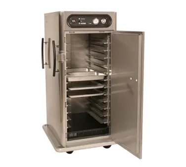 Elevate food handling for enhanced efficiency with the Carter-Hoffmann SR1820 Heated Cabinet. Designed for commercial restaurant use, this mobile unit is a game-changer in the foodservice industry. With its heavy-duty construction and adjustable universal slides, it can hold up to 12 trays measuring 18"x26" or 24 pans measuring 12"x20". The slides are adjustable on 1-3/4" increments, allowing for flexible storage options. Made of stainless steel, this cabinet is not only durable but also easy to clean, ensuring optimal hygiene standards. Equipped with 6" swivel casters, it offers effortless mobility, making it convenient for transporting food from one area to another. The EnduraHeat technology ensures consistent and even heating, keeping your dishes warm and ready to serve. Trust Carter-Hoffmann, a reputable vendor in the industry, to provide you with a reliable and efficient heated cabinet for your restaurant needs.
