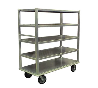 Upgrade kitchen logistics for efficiency with the Carter-Hoffmann T726 Cart, Queen Mary. This versatile cart is designed to streamline your restaurant operations, making it an essential tool for commercial kitchens. With its open design and six spacious shelves measuring 27" x 72", you can easily transport china and silverware in large quantities. The cart features a push handle for effortless maneuverability, while the 8" shelf clearance allows for convenient loading and unloading. Equipped with 2 swivel and 2 rigid 8" casters, this cart ensures smooth mobility even in tight spaces. The aluminum tubular frame provides durability and stability, making it suitable for heavy-duty use. Whether you need to transport dishes from the kitchen to the dining area or restock supplies, the Carter-Hoffmann T726 Cart, Queen Mary is the perfect solution for optimizing your restaurant's logistics.