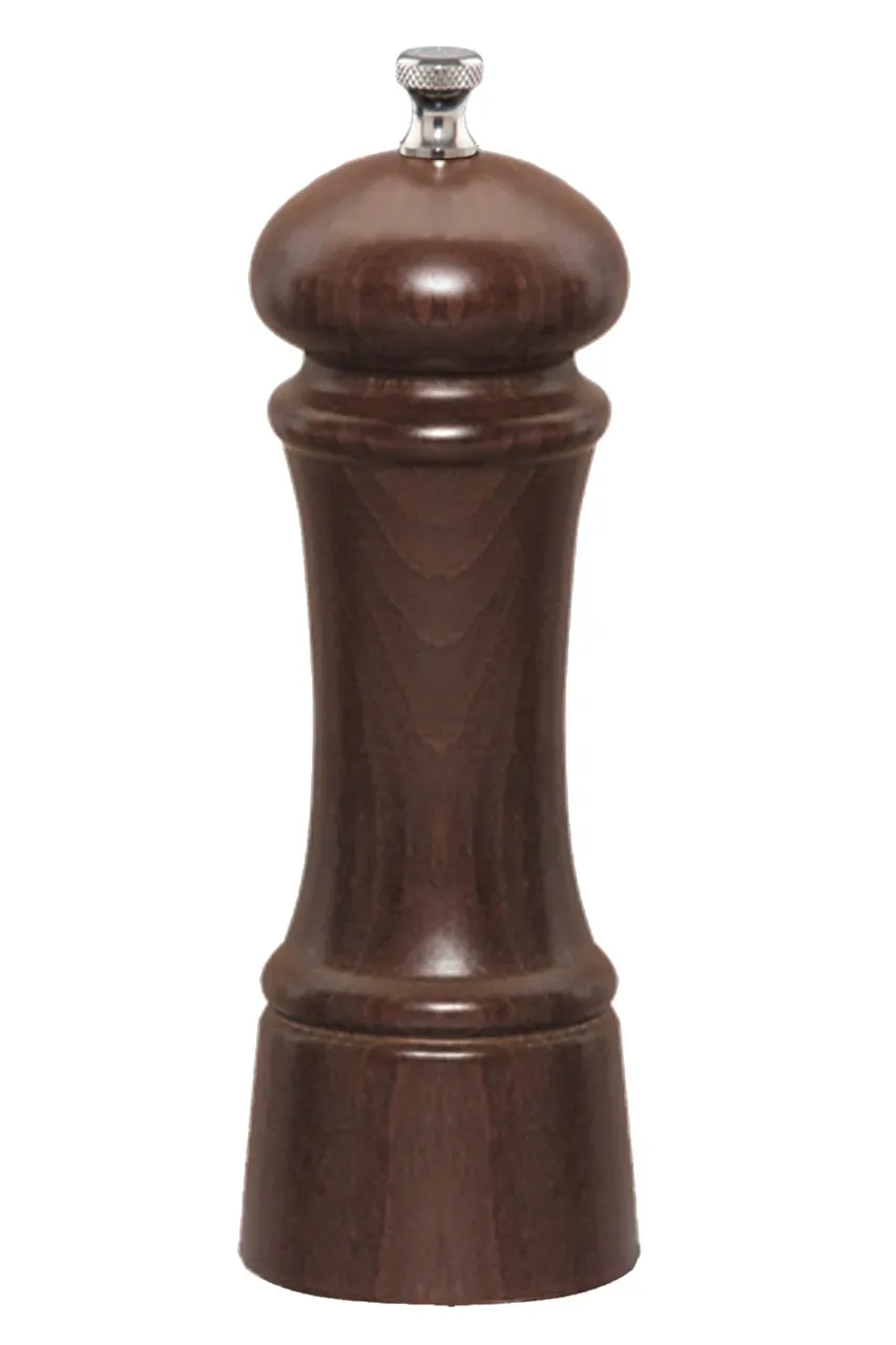 Transform kitchen service with solutions. Introducing the Chef Specialties 06150 Pepper Mill, a game-changer for commercial restaurants. This 6" - 15cm Elegance Walnut Pepper Mill is a must-have tool for enhancing the flavor profiles of your dishes. Crafted by Chef Specialties, a trusted name in the industry, this pepper mill boasts a walnut finish that adds a touch of elegance to any table setting. Its stainless steel grinding mechanism ensures durability and consistent grinding performance, while the Made in USA label guarantees authenticity and quality. With a lifetime warranty, you can rely on this pepper mill for years to come. Whether you're seasoning steaks, salads, or soups, the Chef Specialties 06150 Pepper Mill will elevate your culinary creations to new heights. Don't settle for anything less than the best in your commercial kitchen.