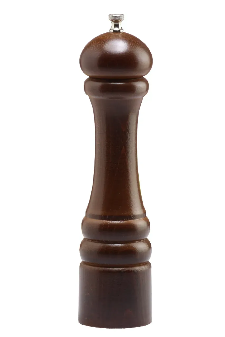 Elevate dining experience with the Chef Specialties, 10150, Pepper Mill. This 10" - 26cm Imperial Walnut Pepper Mill is a must-have for any commercial restaurant. Crafted by Chef Specialties, a trusted vendor in the industry, this pepper mill is designed to enhance the flavor of every dish. The walnut finish adds a touch of elegance to any table setting, while the stainless steel grinding mechanism ensures durability and precision. Made in the USA and backed by a lifetime warranty, this pepper mill is built to withstand the demands of a busy restaurant kitchen. With its 10" height, it is perfect for use in commercial settings where large quantities of freshly ground pepper are needed. Enhance the taste of your dishes and impress your customers with the Chef Specialties, 10150, Pepper Mill.
