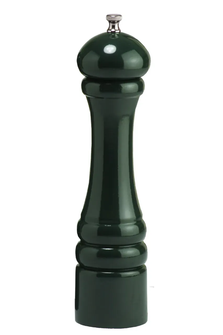 Equip your restaurant for success with the Chef Specialties 10851 Pepper Mill. This professional-grade pepper mill is designed to enhance the flavor of your dishes and elevate the dining experience for your customers. With a height of 10 inches and a tempered stainless steel gear, this pepper mill is built to withstand the demands of a commercial kitchen. The forest green color adds a touch of elegance to your tabletop presentation, while the Made in USA label ensures its authenticity and quality. The Chef Specialties 10851 Pepper Mill comes with a lifetime warranty, giving you peace of mind knowing that it is a reliable and durable investment for your restaurant. Whether you're seasoning a steak or adding a dash of spice to a soup, this pepper mill will deliver consistent and precise results every time. Elevate your culinary creations with the Chef Specialties 10851 Pepper Mill.