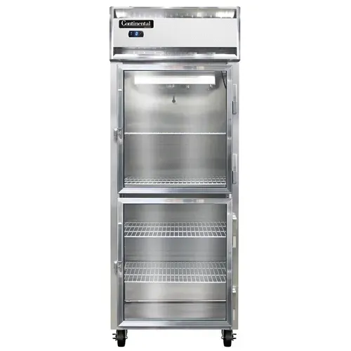 Empower your kitchen staff with the Continental Refrigerator 1FESNSSGDHD Freezer. This reach-in freezer is designed to meet the demands of a busy commercial restaurant. With its extra-wide design and shallow depth, it provides ample storage space without taking up too much floor space. The stainless steel exterior and interior ensure durability and easy cleaning, while the half-height glass doors allow for quick and convenient access to the contents. The electronic control with a digital display allows for precise temperature management, and the hi-low alarm alerts staff if the temperature goes outside the desired range. Made in the USA and certified by cETLus and NSF, this freezer is a reliable and high-quality addition to any commercial kitchen. Trust Continental Refrigerator to deliver exceptional performance and functionality for your restaurant's needs.