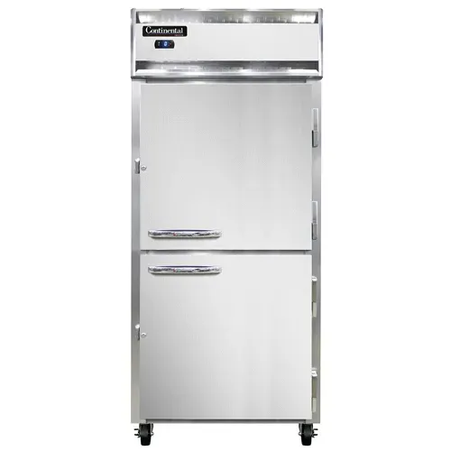 Upgrade your restaurant kitchen with the Continental Refrigerator 1FXNSAHD Freezer Reach-In. This extra-wide, one-section freezer is designed to meet the demands of a busy commercial restaurant. With its self-contained refrigeration system and electronic control with a digital display, you can easily monitor and adjust the temperature to ensure your ingredients stay fresh and frozen. The stainless steel exterior and aluminum interior not only provide durability but also make cleaning a breeze. The half-height solid doors offer easy access to your frozen goods, while the hi-low alarm alerts you if the temperature goes outside the desired range. Made in the USA and certified by cETLus and NSF, this freezer is a reliable and high-quality addition to any restaurant kitchen. Upgrade your kitchen today with the Continental Refrigerator 1FXNSAHD Freezer Reach-In.