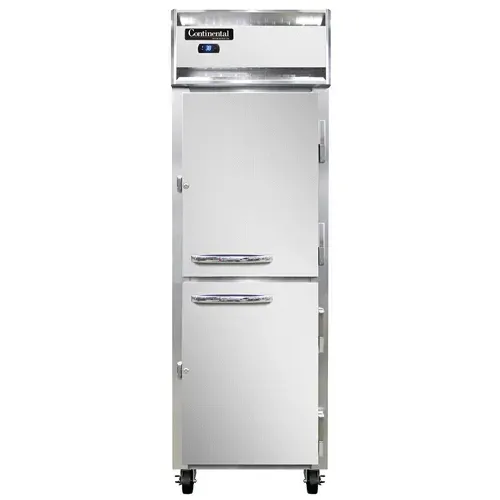 Unleash culinary creativity with the Continental Refrigerator, 1RNSSPTHD, Refrigerator, Pass-Thru. This stainless steel refrigerator is designed for commercial restaurant use, offering a spacious one-section interior with half-height solid doors. The self-contained refrigeration system ensures optimal temperature control, while the electronic control with a digital display allows for easy monitoring and adjustment. With a standard depth and electric condensate evaporator, this refrigerator is both efficient and reliable. The hi-low alarm feature alerts you to any temperature fluctuations, ensuring the freshness and safety of your ingredients. Whether you're storing fresh produce, meats, or beverages, this pass-thru refrigerator provides convenient access from both sides, making it ideal for busy kitchen environments. Trust Continental Refrigerator, a reputable vendor known for their quality and durability. Upgrade your restaurant's refrigeration capabilities with the Continental Refrigerator, 1RNSSPTHD, Refrigerator, Pass-Thru.