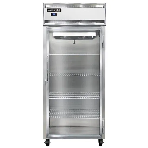 Culinary artistry redefined with the Continental Refrigerator, 1RXSNSSGD, Refrigerator, Reach-In. This extra-wide, one-section reach-in display refrigerator is designed to meet the demands of a commercial restaurant. With its shallow depth and wide hinged glass doors, it provides easy access to your ingredients while showcasing them to your customers. The stainless steel exterior and interior not only give it a sleek and professional look but also make it durable and easy to clean. The electronic control with a digital display allows you to easily monitor and adjust the temperature, while the hi-low alarm ensures that your food stays at the optimal temperature at all times. Made in the USA and certified by cETLus and NSF, this refrigerator is a reliable and high-quality addition to any commercial kitchen. Upgrade your restaurant's refrigeration with the Continental Refrigerator, 1RXSNSSGD, Refrigerator, Reach-In.