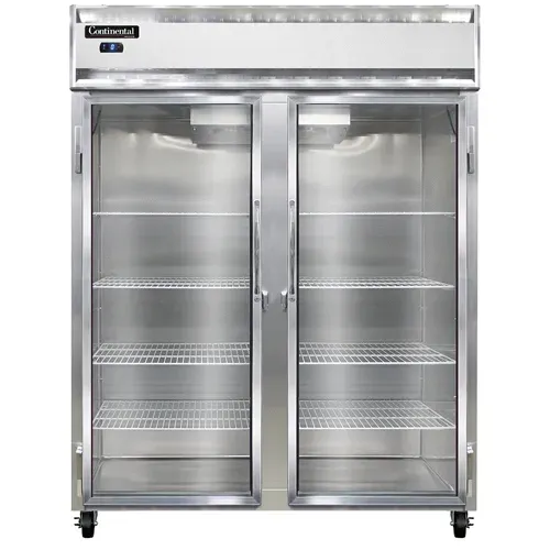 Equip your kitchen for success with the Continental Refrigerator 2FENGD Freezer, Reach-In. This extra-wide freezer is designed to meet the demands of a busy commercial restaurant. With a spacious 50 cu. ft. capacity, it provides ample storage space for all your frozen ingredients and products. The two-section design and hinged self-closing glass doors make it easy to access and organize your items. The eight epoxy coated steel shelves offer durability and flexibility in arranging your frozen goods. The aluminum end panels and interior ensure longevity and easy cleaning, while the stainless steel front adds a sleek and professional look to your kitchen. The electronic control with a digital display allows for precise temperature management, and the hi-low alarm alerts you if the temperature deviates from the set range. With a powerful 1 HP self-contained refrigeration system and electric condensate evaporator, this freezer is energy-efficient and reliable. Made in the USA and certified by cETLus and NSF, the Continental Refrigerator 2FENGD is a top-quality freezer that will enhance the efficiency and productivity of your commercial kitchen.