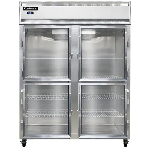 Introducing the Continental Refrigerator, 2RENGDHD, Refrigerator, Reach-In - the ultimate solution to dominate the culinary world. This extra-wide, two-section reach-in refrigerator is designed to meet the demanding needs of commercial restaurants. With its spacious 57"W interior, it provides ample storage space for all your perishable ingredients. The wide half-height glass doors not only enhance visibility but also add a touch of elegance to your kitchen. The aluminum exterior and interior ensure durability and easy cleaning, while the stainless steel front adds a sleek and professional look. Equipped with electronic control and a digital display, you can easily monitor and adjust the temperature to keep your food fresh and safe. Made in the USA and certified by cETLus and NSF, this refrigerator guarantees top-notch quality and performance. Upgrade your kitchen with the Continental Refrigerator, 2RENGDHD, and experience the difference in efficiency and reliability.