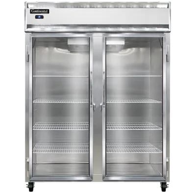 Achieve culinary excellence with the Continental Refrigerator, 2RENSSSGD, Refrigerator, Reach-In. This extra-wide, two-section refrigerator is designed to meet the demands of a commercial restaurant. With its stainless steel exterior and interior, it not only looks sleek but also ensures durability and easy cleaning. The full-height sliding glass doors provide easy access to the contents, allowing for quick and efficient food retrieval. The electronic control with a digital display allows for precise temperature management, ensuring that your ingredients stay fresh and at the optimal temperature. The hi-low alarm alerts you if the temperature deviates from the set range, helping you maintain food safety standards. The electric condensate evaporator eliminates the need for manual defrosting, saving you time and effort. With a 1/2 HP compressor, this refrigerator provides reliable cooling power. Made in the USA and certified by cETLus and NSF, you can trust the quality and performance of this Continental Refrigerator. Upgrade your kitchen with this top-of-the-line reach-in refrigerator and elevate your culinary creations.