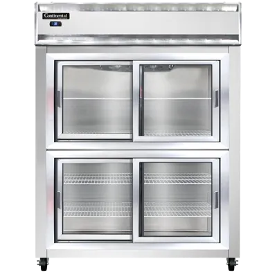 Create culinary magic with the Continental Refrigerator, 2RESNSASGDHD, Refrigerator, Reach-In. This extra-wide, two-section refrigerator is perfect for commercial restaurant use. With its shallow depth and wide half-height sliding glass doors, it provides easy access to your ingredients while maximizing space efficiency. The stainless steel exterior and aluminum interior ensure durability and easy cleaning, while the self-contained refrigeration system keeps your food at the perfect temperature. The electronic control with a digital display allows for precise temperature management, and the hi-low alarm alerts you if the temperature goes outside the desired range. With a powerful 1/2 HP motor, this refrigerator is built to handle the demands of a busy kitchen. Made in the USA and certified by cETLus and NSF, you can trust the quality and reliability of this Continental Refrigerator. Upgrade your restaurant's refrigeration capabilities with the 2RESNSASGDHD and experience the difference it makes in your kitchen.