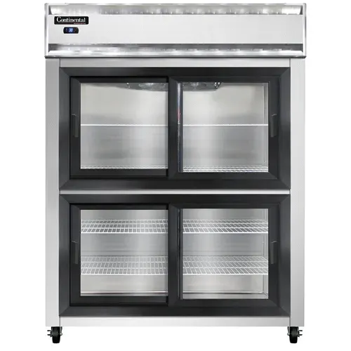 Achieve kitchen supremacy with the Continental Refrigerator, 2RESNSGDHD, Refrigerator, Reach-In. This extra-wide, two-section refrigerator is designed to meet the demands of a commercial restaurant. With its shallow depth and wide half-height sliding glass doors, it provides easy access to your ingredients while maximizing space efficiency. The aluminum exterior and interior ensure durability and easy cleaning, while the stainless steel front adds a sleek and professional look to your kitchen. The electronic control with a digital display allows for precise temperature management, and the hi-low alarm ensures that your perishable items are always stored at the optimal temperature. With a 1/2 HP self-contained refrigeration system, this refrigerator is powerful enough to handle the needs of a busy kitchen. Made in the USA and certified by cETLus and NSF, you can trust the quality and reliability of this Continental Refrigerator. Upgrade your kitchen with the 2RESNSGDHD and experience the difference it makes in your restaurant's efficiency and productivity.