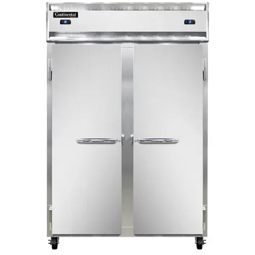 Take your kitchen to the next level with the Continental Refrigerator 2RFN Reach-In Refrigerator Freezer. This top-of-the-line appliance is designed to meet the demanding needs of commercial restaurants. With its stainless steel front and aluminum interior, it not only looks sleek but is also built to withstand the rigors of a busy kitchen. The two-section design provides ample storage space, while the self-contained refrigeration system ensures optimal temperature control. The electronic control with a digital display allows for easy monitoring and adjustment, while the hi-low alarm alerts you to any temperature fluctuations. The LED interior lighting illuminates the contents, making it easy to find what you need. With six epoxy-coated steel shelves, you can organize your ingredients and supplies efficiently. Made in the USA and certified by cETLus and NSF, this Continental Refrigerator is a reliable and high-quality addition to any commercial kitchen.