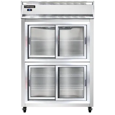 Culinary excellence in every dish starts with the Continental Refrigerator, 2RNSASGDHD. This reach-in display refrigerator is designed to meet the demanding needs of commercial restaurants. With its stainless steel exterior and aluminum interior, it not only looks sleek but also ensures durability and easy cleaning. The narrow sliding glass half doors provide easy access to your ingredients while minimizing temperature loss. The electronic control with a digital display allows for precise temperature management, ensuring your food stays fresh and safe. The hi-low alarm alerts you if the temperature deviates from the set range, giving you peace of mind. The electric condensate evaporator eliminates the need for manual defrosting, saving you time and effort. Powered by a 1/2 HP compressor, this refrigerator delivers reliable performance. Made in the USA and certified by cETLus and NSF, you can trust the quality and safety of this Continental Refrigerator. Upgrade your kitchen with the 2RNSASGDHD and elevate your culinary creations.