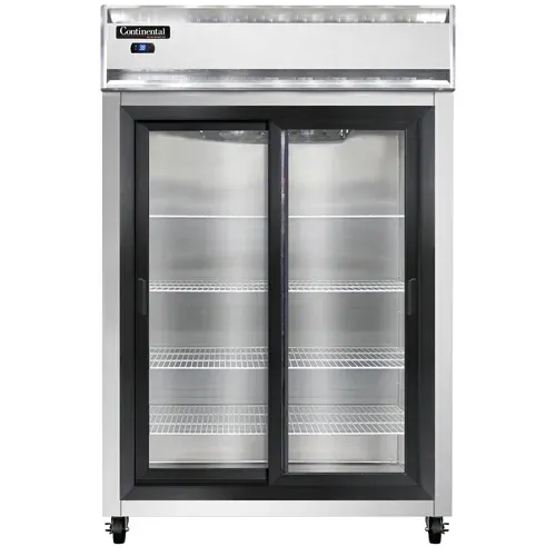 Culinary excellence in every dish starts with the Continental Refrigerator, 2RNSSGD, Reach-In Refrigerator. This top-of-the-line refrigerator is designed to meet the demanding needs of commercial restaurants. With its stainless steel exterior and interior, it not only looks sleek but also ensures durability and easy cleaning. The narrow hinged glass doors provide a clear view of the contents, allowing chefs to easily locate ingredients without opening the doors and compromising the temperature. The electronic control with a digital display allows for precise temperature management, ensuring that food stays fresh and safe. The hi-low alarm alerts staff if the temperature deviates from the set range, preventing spoilage. The electric condensate evaporator eliminates the need for manual defrosting, saving time and effort. With a powerful 1/2 HP compressor, this refrigerator can handle the demands of a busy kitchen. Made in the USA and certified by cETLus and NSF, the Continental Refrigerator, 2RNSSGD, is a reliable and efficient choice for any commercial restaurant.