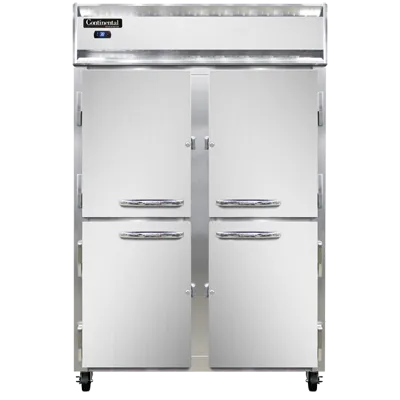 Culinary artistry redefined with the Continental Refrigerator, 2RNSSHD, Refrigerator, Reach-In. This two-section, self-contained refrigeration unit is designed to meet the demands of a commercial restaurant. With a stainless steel exterior and interior, it not only looks sleek but also ensures durability and easy cleaning. The standard depth and half-height solid doors provide convenient access to the stored items, while the electronic control with a digital display allows for precise temperature management. The hi-low alarm alerts the staff if the temperature goes outside the desired range, ensuring food safety. The electric condensate evaporator eliminates the need for manual defrosting, saving time and effort. Powered by a 1/3 HP motor, this refrigerator is energy-efficient and reliable. With cETLus and NSF certifications, you can trust its quality and compliance with industry standards. Elevate your culinary experience with the Continental Refrigerator, 2RNSSHD, Refrigerator, Reach-In. Made in the USA, this unit is a testament to exceptional craftsmanship and functionality.