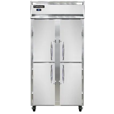 Introducing the Continental Refrigerator, 2RSENSSHD, Refrigerator, Reach-In - the ultimate appliance to dominate the culinary world. This slim line refrigerator is designed to meet the demanding needs of commercial restaurants. With its two-section, self-contained refrigeration system, this stainless steel beauty offers ample storage space for all your perishable ingredients. The half-height solid doors provide easy access while maintaining temperature control. The electronic control with a digital display allows for precise temperature adjustments, ensuring your food stays fresh and safe. Plus, the hi-low alarm alerts you if the temperature deviates from the set range, preventing any potential spoilage. The electric condensate evaporator eliminates the need for manual defrosting, saving you time and effort. Made in the USA and certified by cETLus and NSF, this Continental Refrigerator is built to last and meet the highest industry standards. Upgrade your kitchen with this reliable and efficient reach-in refrigerator and elevate your culinary creations to new heights.