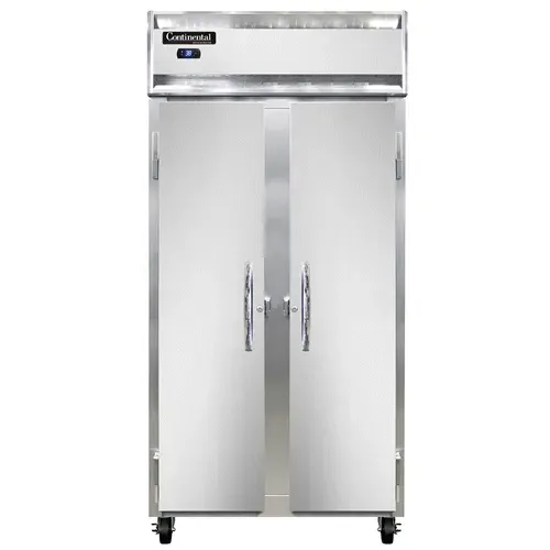Achieve culinary excellence with the Continental Refrigerator, 2RSESN, Refrigerator, Reach-In. This slim line refrigerator is designed to meet the needs of commercial restaurants, offering a shallow depth and a compact 36-1/4" width. The stainless steel front and aluminum interior and ends not only provide durability but also give a sleek and professional look to any kitchen. The full-height solid doors ensure easy access to the contents while maintaining temperature control. With self-contained refrigeration and electronic control with a digital display, this refrigerator offers precise temperature management and a hi-low alarm to alert you of any fluctuations. Made in the USA and certified by cETLus and NSF, you can trust the quality and reliability of this Continental Refrigerator. Upgrade your restaurant's refrigeration system with the 2RSESN and experience the convenience and efficiency it brings to your kitchen.