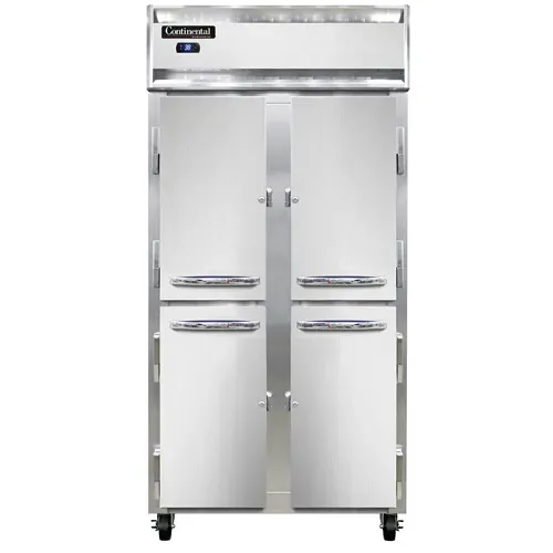 Mobilize your kitchen with the Continental Refrigerator, 2RSESNHD, Reach-In Refrigerator. This slim line refrigerator is designed to optimize space in your commercial restaurant. With a shallow depth of 36-1/4"W, it fits seamlessly into any kitchen layout. The stainless steel front not only adds a sleek and professional look but also ensures durability and easy cleaning. The aluminum interior and ends provide excellent insulation and temperature retention. The half-height solid doors allow for easy access to your ingredients while minimizing cold air loss. The electronic control with a digital display allows for precise temperature management, while the hi-low alarm alerts you if the temperature deviates from the set range. With a 1/4 HP self-contained refrigeration system, this reach-in refrigerator is energy-efficient and reliable. Made in the USA and certified by cETLus and NSF, you can trust the Continental Refrigerator, 2RSESNHD, to meet the high standards of your commercial kitchen.