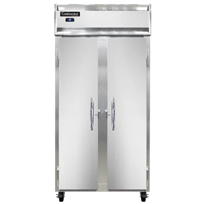 Introducing the Continental Refrigerator, 2RSESNSA, Refrigerator, Reach-In - the perfect appliance to dominate the culinary world. This slim line refrigerator is designed to meet the needs of commercial restaurants, offering a shallow depth of 36-1/4"W, making it ideal for tight spaces. With its aluminum interior and stainless steel exterior, this refrigerator is not only durable but also easy to clean, ensuring food safety and hygiene. The full-height solid doors provide easy access to the contents, while the electronic control with a digital display allows for precise temperature management. The hi-low alarm feature ensures that you are immediately alerted if the temperature goes outside the desired range, protecting your valuable ingredients. Made in the USA and certified by cETLus and NSF, this Continental Refrigerator is a reliable and efficient choice for any professional kitchen. Don't miss out on the opportunity to elevate your culinary creations with this exceptional reach-in refrigerator.