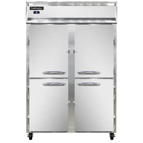 Enhance your commercial kitchen with the Continental Refrigerator, 2RSNHD, Reach-In Refrigerator. This top-of-the-line refrigerator is designed to meet the demands of a busy restaurant environment. With its stainless steel front and aluminum interior and ends, it not only looks sleek but is also durable and easy to clean. The shallow depth and half-height solid doors make it perfect for tight spaces, while the electronic control with digital display allows for precise temperature management. The hi-low alarm ensures that you are alerted if the temperature goes outside the desired range, helping to protect your valuable ingredients. The electric condensate evaporator eliminates the need for manual defrosting, saving you time and effort. With a 1/3 HP compressor, this refrigerator provides reliable cooling power. Made in the USA and certified by cETLus and NSF, you can trust in the quality and safety of this Continental Refrigerator. Upgrade your kitchen with the 2RSNHD Reach-In Refrigerator and experience the convenience and efficiency it brings to your restaurant operations.