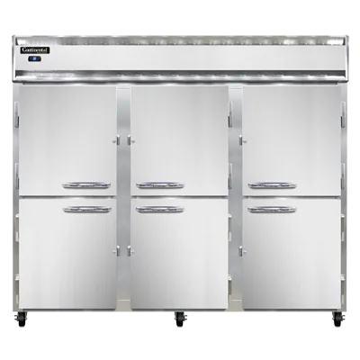 Introducing the Continental Refrigerator, 3RESNSAHD, Refrigerator, Reach-In - the perfect addition to drive restaurant profitability. With its extra-wide design and shallow depth, this three-section reach-in refrigerator maximizes storage space while minimizing its footprint. The stainless steel exterior and aluminum interior ensure durability and easy cleaning, making it ideal for the fast-paced environment of a commercial restaurant. The half-height solid doors provide quick access to your ingredients, while the electronic control with a digital display allows for precise temperature management. The hi-low alarm feature ensures that you are immediately alerted to any temperature fluctuations, helping to maintain the freshness and quality of your perishable items. Powered by a 1/2 HP compressor, this refrigerator is energy-efficient and reliable. Made in the USA and certified by cETLus and NSF, you can trust the Continental Refrigerator, 3RESNSAHD, to meet the highest standards of quality and safety. Upgrade your restaurant's refrigeration capabilities with this top-of-the-line reach-in refrigerator.