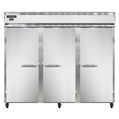 Create culinary magic with the Continental Refrigerator 3RESNSS Reach-In Refrigerator. This extra-wide, three-section refrigerator is designed to meet the demands of a busy commercial restaurant. With its shallow depth and full-height solid doors, it provides ample storage space while maximizing efficiency in the kitchen. The stainless steel exterior and interior not only give it a sleek and professional look but also make it durable and easy to clean. The electronic control with a digital display allows for precise temperature management, while the hi-low alarm ensures food safety. Made in the USA and certified by cETLus and NSF, this refrigerator is built to last and meets the highest industry standards. Whether you need to store fresh ingredients or keep prepared dishes at the perfect temperature, the Continental Refrigerator 3RESNSS is the ideal choice for any commercial kitchen.