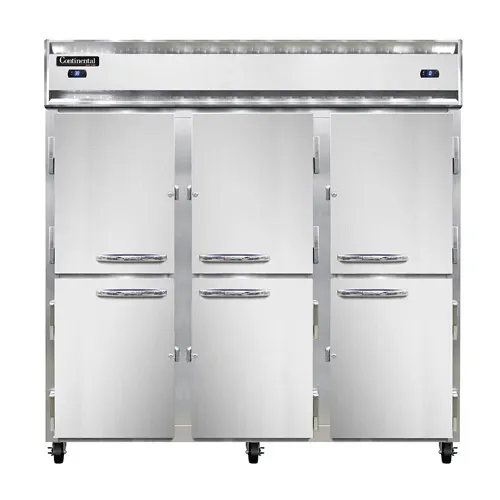 Fuel your passion for cooking with the Continental Refrigerator 3RRFNSSHD Reach-In Refrigerator Freezer. This top-of-the-line appliance is designed to meet the demands of a busy commercial restaurant kitchen. With its stainless steel exterior and interior, this refrigerator freezer is not only durable but also easy to clean, ensuring a hygienic environment for your food storage. The three-section design provides ample space for organizing your ingredients, while the half-height solid doors allow for easy access without compromising on energy efficiency. The electronic control with a digital display allows for precise temperature management, while the hi-low alarm ensures that you are alerted if the temperature deviates from the set range. The electric condensate evaporator eliminates the need for manual defrosting, saving you time and effort. Powered by dual 1/3 & 1/3 HP compressors, this refrigerator freezer delivers reliable performance and maintains optimal temperatures for your perishable items. Trust Continental Refrigerator to provide you with a high-quality, reliable appliance that will enhance your restaurant's efficiency and productivity.