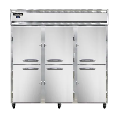 Maximize your food service potential with the Continental Refrigerator, 3RSNSAHD, Refrigerator, Reach-In. This top-of-the-line refrigerator is designed to meet the demanding needs of commercial restaurants. With its shallow depth and half-height solid doors, it provides easy access to your ingredients while saving valuable space in the kitchen. The stainless steel exterior and aluminum interior ensure durability and easy cleaning, while the self-contained refrigeration system keeps your food at the perfect temperature. The electronic control with a digital display allows for precise temperature adjustments, and the hi-low alarm alerts you if the temperature deviates from the set range. With a powerful 1/2 HP motor, this refrigerator is built to handle the demands of a busy kitchen. Plus, it is cETLus and NSF certified, guaranteeing its quality and safety. Trust Continental Refrigerator to deliver reliable and efficient refrigeration solutions for your restaurant.
