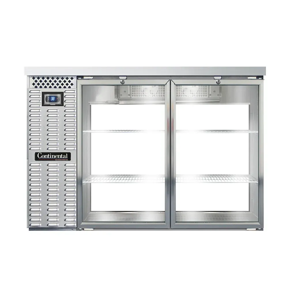 Enhance the heart of your restaurant with the Continental Refrigerator BB50NSSSGDPT Back Bar Cabinet. This refrigerated pass-thru unit is designed to meet the demands of a busy commercial kitchen. With a spacious 16.0 cubic feet capacity, it provides ample storage space for your beverages and ingredients. The front breathing feature allows for easy installation, while the sliding glass doors provide convenient access to your products. The electronic controller with a digital display and hi-low alarm ensures precise temperature control and alerts you if there are any fluctuations. Made in the USA, this back bar cabinet features a durable stainless steel exterior and a galvanized interior with a reinforced stainless steel floor, making it built to last. The epoxy coated steel shelves are adjustable, allowing you to customize the storage space to fit your needs. With its self-contained refrigeration system and 1/3 HP compressor, this unit is energy-efficient and reliable. Trust Continental Refrigerator to deliver high-quality equipment for your restaurant.