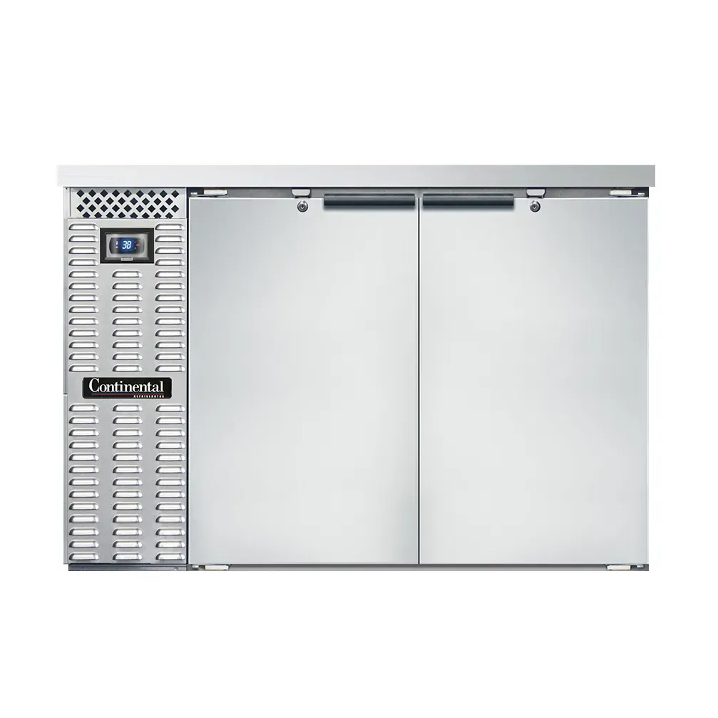 Create culinary magic with the Continental Refrigerator BB50SNSS Back Bar Cabinet. This refrigerated unit is perfect for commercial restaurant use, offering a shallow depth design that maximizes space without compromising on storage capacity. With a generous 13.0 cu. ft. capacity, this back bar cooler provides ample room for storing beverages, ingredients, and other essentials. The stainless steel top adds a touch of elegance while ensuring durability and easy cleaning. The two doors come with locks for added security, and the electronic controller with a digital display and hi-low alarm allows for precise temperature control and monitoring. The galvanized interior with a reinforced stainless steel floor and epoxy coated steel shelves ensures long-lasting performance. Made in the USA and certified by cETLus and NSF, this Continental Refrigerator back bar cabinet is a reliable and efficient choice for any commercial kitchen.