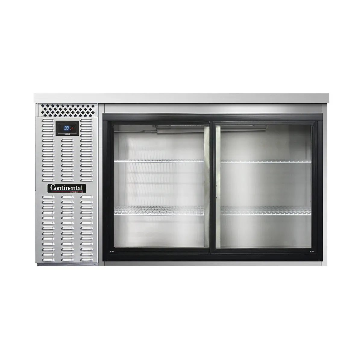 Deliver food perfection with the Continental Refrigerator BB59SNSSSGD Back Bar Cabinet. This refrigerated unit is designed to meet the needs of commercial restaurants, offering a shallow depth of 59"W and 15.0 cubic feet of storage space. The front breathing system ensures efficient operation, while the sliding glass doors provide easy access to your beverages and ingredients. The electronic controller with a digital display and hi-low alarm allows for precise temperature control, ensuring that your food and drinks are kept at the perfect temperature. The stainless steel exterior not only adds a sleek and professional look to your establishment but also ensures durability and easy cleaning. Inside, the galvanized interior with a reinforced stainless steel floor and epoxy coated steel shelves provide a sturdy and hygienic storage solution. With self-contained refrigeration and a 1/3 HP compressor, this back bar cabinet is both reliable and energy-efficient. Trust in Continental Refrigerator for quality and performance, as this product is proudly made in the USA and certified by cETLus and NSF.