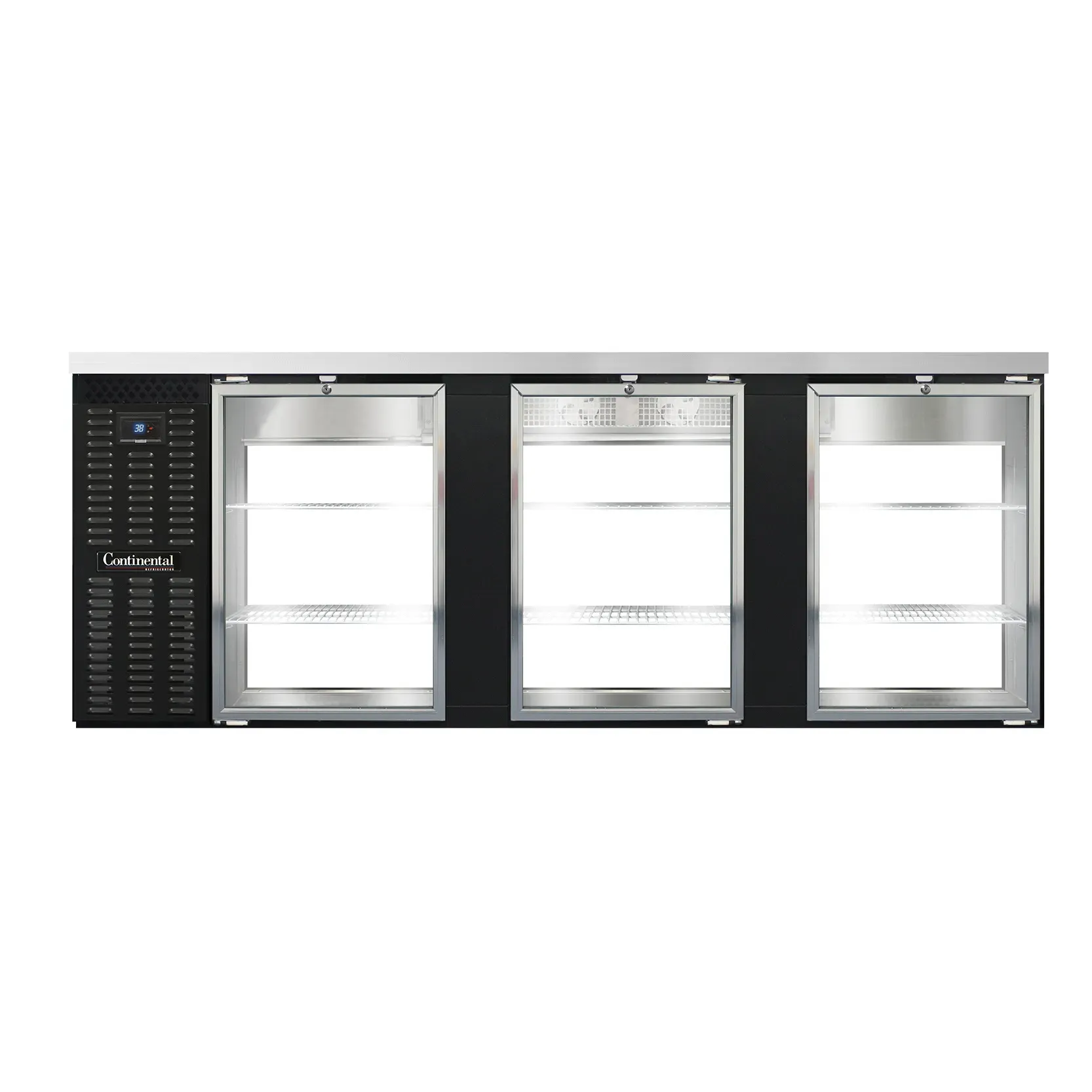 Elevate your dining experience with the Continental Refrigerator BB90NGDPT Back Bar Cabinet. This refrigerated pass-thru unit is designed to meet the demands of a commercial restaurant setting. With its spacious 35.0 cubic feet capacity, it provides ample storage space for your beverages and ingredients. The front breathing feature allows for easy installation, while the stainless steel top ensures durability and a sleek appearance. The six glass doors, equipped with locks, not only provide visibility but also keep your items secure. The electronic controller with a digital display and hi-low alarm allows for precise temperature control and monitoring. The black enamel finish exterior adds a touch of elegance to your establishment, while the galvanized interior with a reinforced stainless steel floor ensures easy cleaning and maintenance. With its self-contained refrigeration system and 1/2 HP compressor, this back bar cabinet is both efficient and reliable. Made in the USA and certified by cETLus and NSF, you can trust the quality and authenticity of this Continental Refrigerator product.