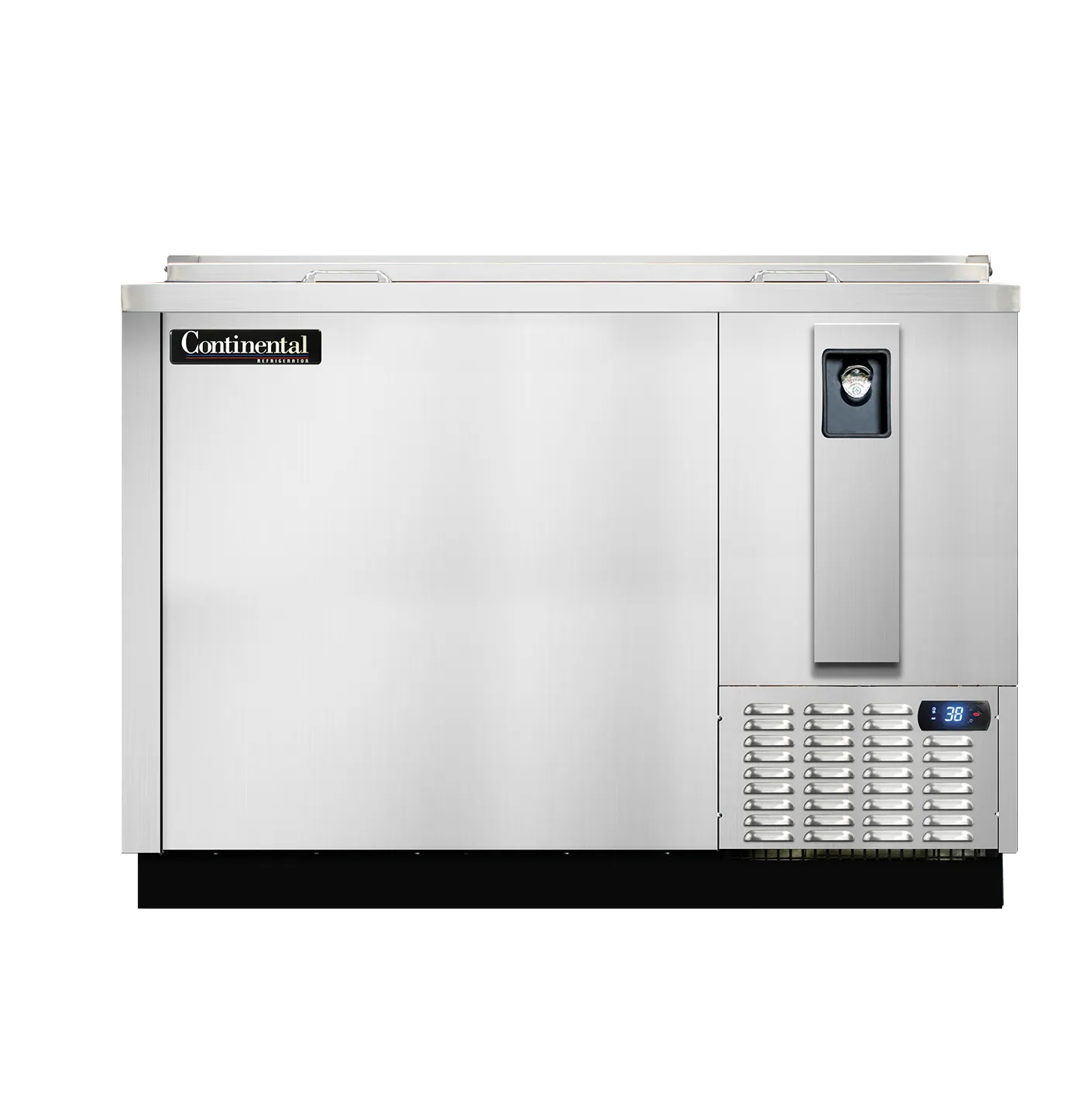 Maximize your food service potential with the Continental Refrigerator CBC50-SS Bottle Cooler. This flat top bottle cooler is designed to meet the demands of a busy commercial restaurant. With its stainless steel top and slide back lids, it offers a sleek and durable solution for storing and cooling your beverages. The CBC50-SS has an impressive capacity, able to hold up to 18 cases of 12 oz bottles or 27 cases of 12 oz cans. The stainless steel exterior and galvanized interior ensure longevity and easy cleaning. The electronic controller with a digital display and hi-low alarm allows for precise temperature control and monitoring. The removable cap catcher makes it convenient to keep your workspace clean. Made in the USA and certified by cETLus and NSF, the Continental Refrigerator CBC50-SS Bottle Cooler is a reliable and efficient choice for any commercial restaurant.