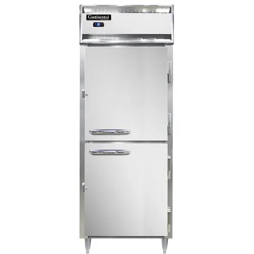 Unleash culinary creativity with the Continental Refrigerator D1RESNSSHD Reach-In Refrigerator. This designer line wide refrigerator is perfect for commercial restaurant use, offering a spacious 28-1/2" wide cabinet with a shallow depth design. The stainless steel exterior and interior not only provide durability but also add a sleek and professional look to any kitchen. The wide half-height solid doors make it easy to access and organize your ingredients, while the electronic control with a digital display allows for precise temperature management. With a hi-low alarm feature, you can ensure that your perishable items are always stored at the optimal temperature. The 6" stainless steel legs provide stability and make cleaning underneath a breeze. Made in the USA and certified by cETLus and NSF, this Continental Refrigerator is a reliable and high-quality addition to any commercial kitchen.