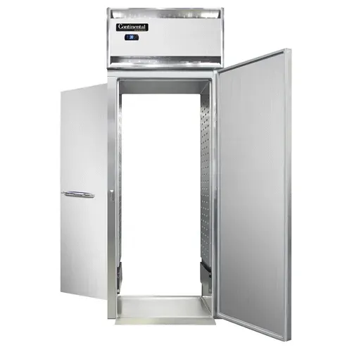 Master the art of cooking with the Continental Refrigerator D1RINRT Roll-Thru Refrigerator. This designer line refrigerator is perfect for commercial restaurant use, offering a sleek stainless steel front and durable aluminum interior and ends. The standard depth cabinet provides ample storage space, while the full-height solid doors ensure easy access to your ingredients. With self-contained refrigeration and electronic control with a digital display, you can easily monitor and adjust the temperature to keep your food fresh. The hi-low alarm alerts you if the temperature goes outside the desired range, ensuring the safety of your perishable items. The removable stainless steel ramps make loading and unloading a breeze, saving you time and effort. Powered by a 1/3 HP motor, this roll-thru refrigerator is built to handle the demands of a busy commercial kitchen. Trust Continental Refrigerator to deliver reliable and efficient refrigeration solutions for your restaurant.