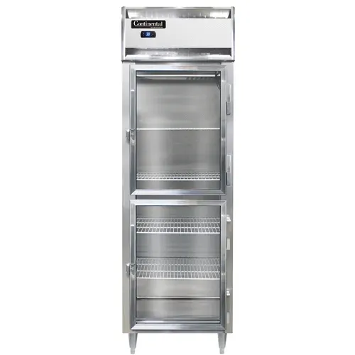 Take your kitchen to the next level with the Continental Refrigerator D1RNGDHD Reach-In Refrigerator. This designer line refrigerator is perfect for commercial restaurant use, offering a sleek and modern design that will enhance the aesthetics of any kitchen. The one-section reach-in design provides ample storage space for all your perishable items, while the self-contained refrigeration system ensures optimal temperature control. The aluminum exterior and interior, along with the stainless steel front, make this refrigerator durable and easy to clean. The half-height glass doors allow for easy visibility of the contents inside, saving you time and effort. With electronic control and a digital display, you can easily monitor and adjust the temperature as needed. The hi-low alarm alerts you if the temperature goes outside the desired range, ensuring the safety of your food. The 6" stainless steel legs provide stability and make it easy to move the refrigerator for cleaning. With a 1/3 HP motor, this refrigerator is powerful and efficient. It is cETLus and NSF certified, guaranteeing its quality and safety. Upgrade your kitchen with the Continental Refrigerator D1RNGDHD Reach-In Refrigerator and experience the convenience and reliability it offers.