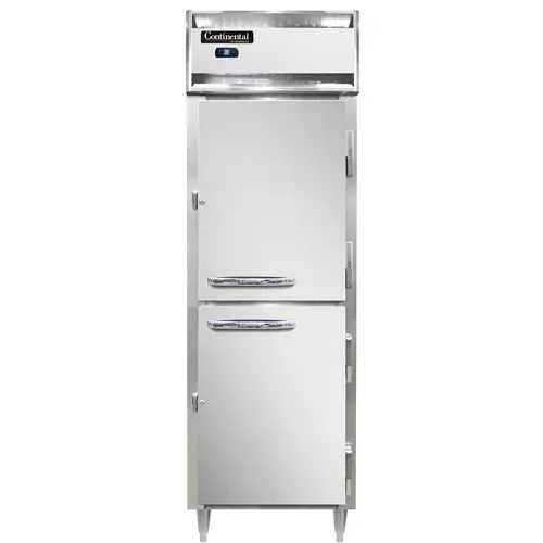 Mobilize your kitchen with the Continental Refrigerator D1RNPTHD Pass-Thru Refrigerator. Designed for commercial restaurant use, this one-section refrigerator offers convenience and efficiency. The aluminum exterior and interior, along with the stainless steel front, ensure durability and easy cleaning. The standard depth cabinet provides ample storage space for your ingredients and supplies. The half-height solid doors allow for easy access and help maintain temperature consistency. With electronic control and a digital display, you can easily monitor and adjust the temperature to meet your specific needs. The hi-low alarm alerts you if the temperature goes outside the desired range, ensuring the safety of your perishable items. The 6" stainless steel legs provide stability and make it easy to clean underneath the refrigerator. With a 1/4 HP self-contained refrigeration system, this pass-thru refrigerator is a reliable and efficient addition to any commercial kitchen.
